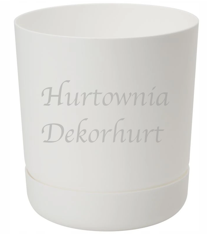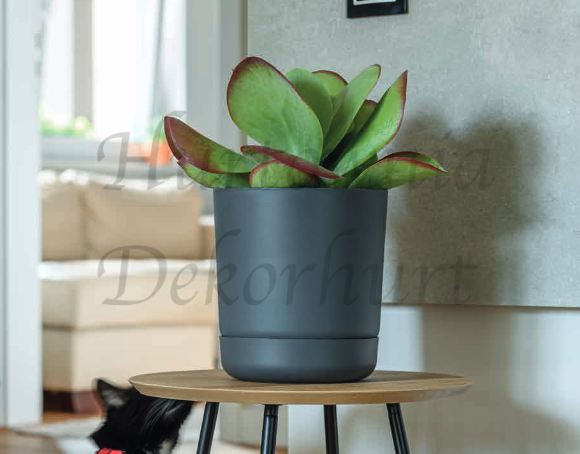 Lekka, wykonana z wytrzymałego plastiku doniczka wraz z dedykowaną podstawką.
