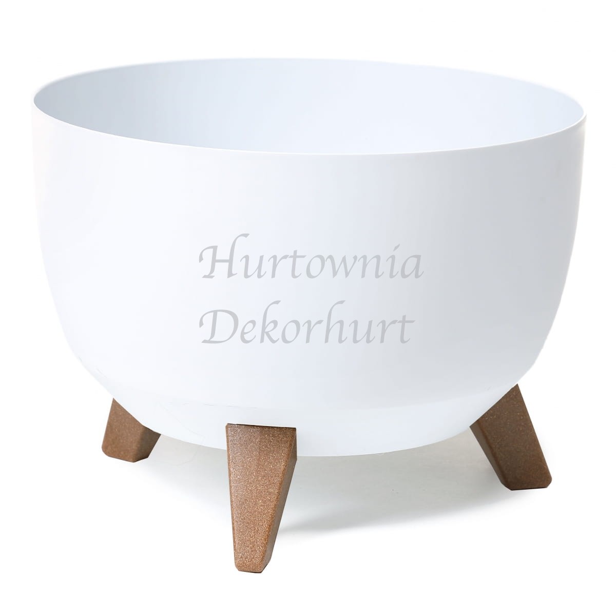 Pomysł na produkt, który prezentujemy zrodził się z obserwacji trendów wnętrzarskich. Nóżki wykonane z tworzywa eco z powodzeniem imitują drewno. To, w połączeniu z oryginalnym kształtem korpusu sprawia, że produkt będzie wyróżniał się na półce i przyciągał wzrok. Misa jest produktem do samodzielnego montażu. Jest on bardzo prosty i nie wymaga użycia żadnych narzędzi. Wystarczy tylko wcisnąć nóżki.