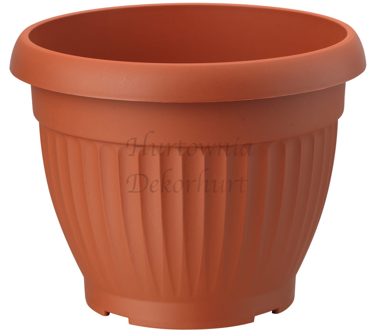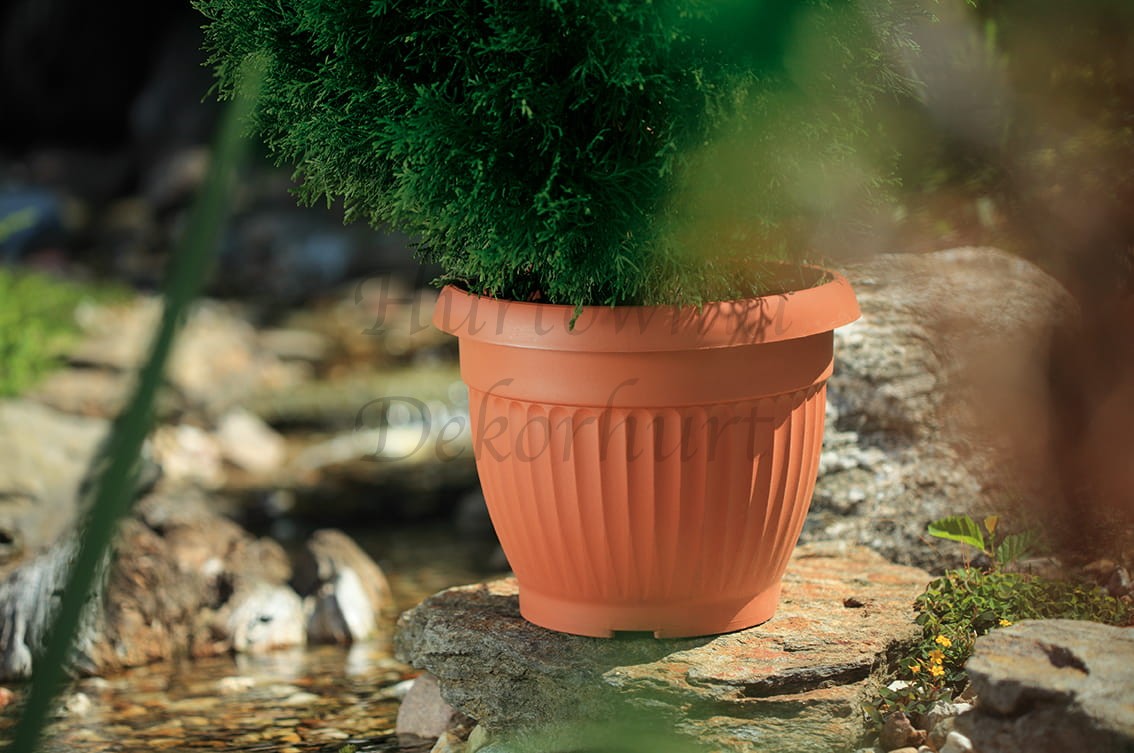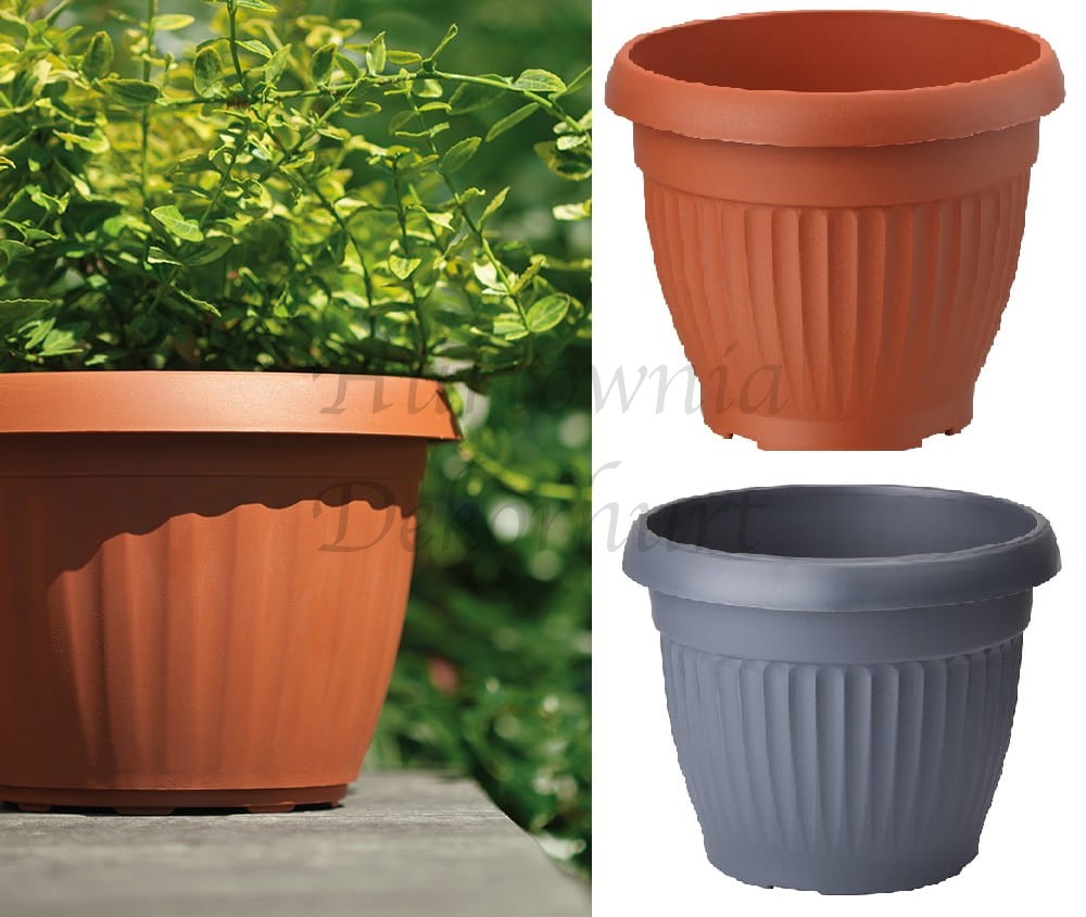 Lekka, wykonana z wytrzymałego plastiku doniczka. Nowoczesny design i prosta forma sprawia, że pasuje do nowoczesnych jak i tradycyjnie urządzonych wnętrz. Idealna dla roślin ogrodowych. Dostępna w kilku kolorach i rozmiarach.