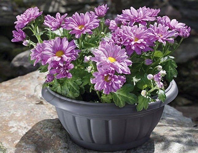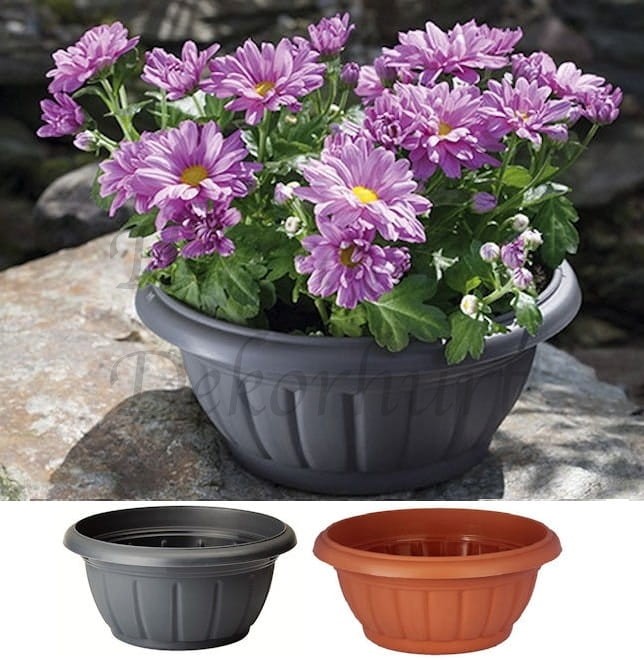 Lekka, wykonana z wytrzymałego plastiku misa. Idealna do kwiatów ogrodowych jak i kompozycji.