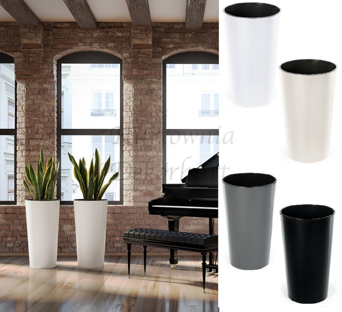Solidna doniczka plastikowa z wyjmowanym wkładem.