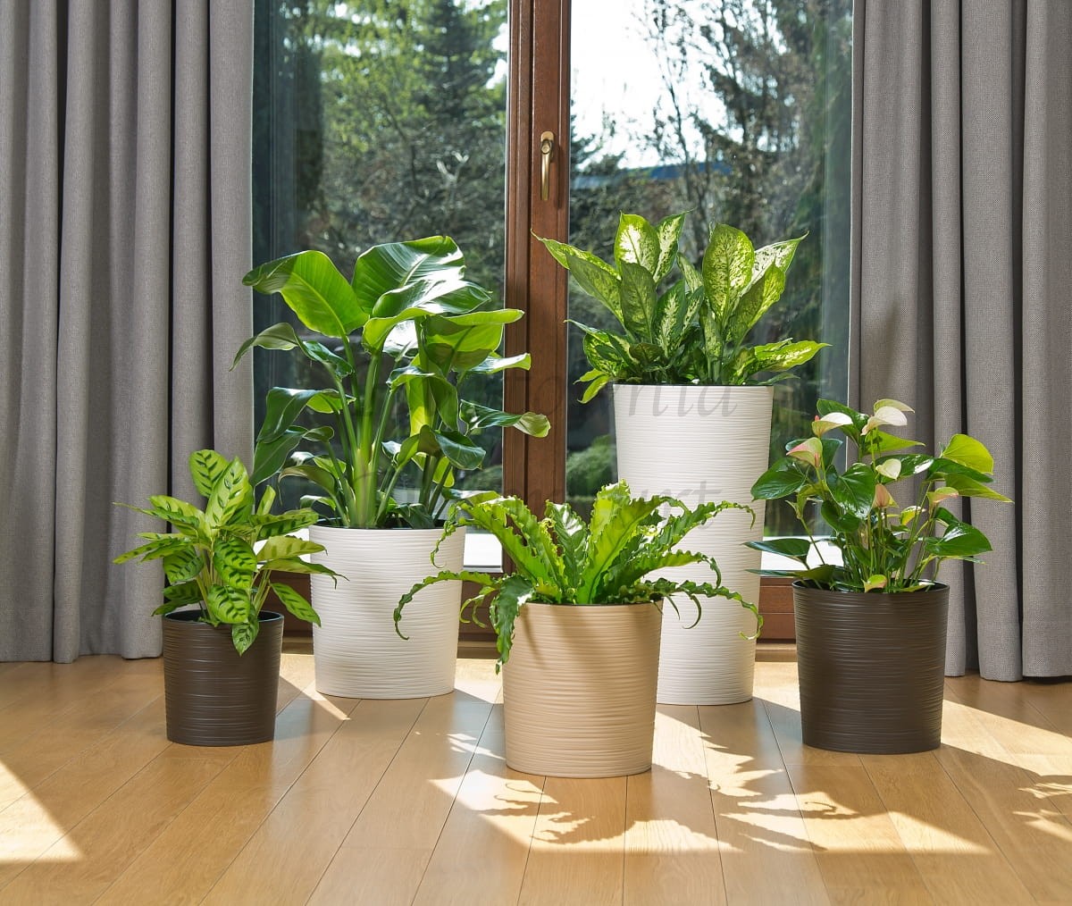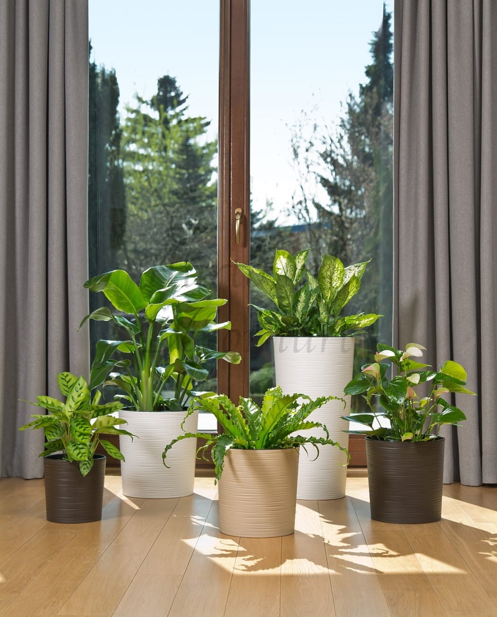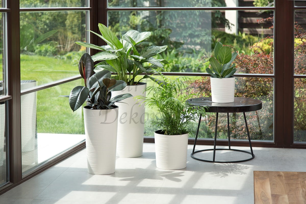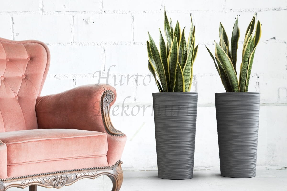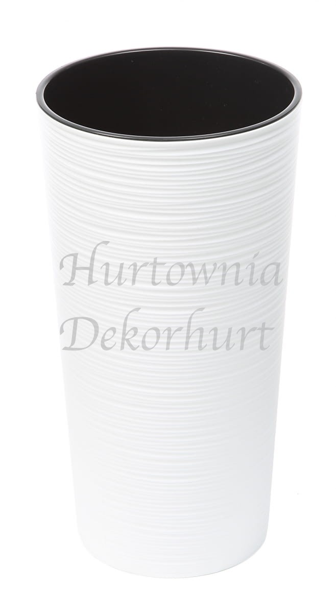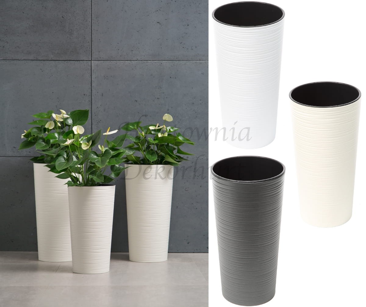 Solidna doniczka plastikowa z wyjmowanym wkładem.