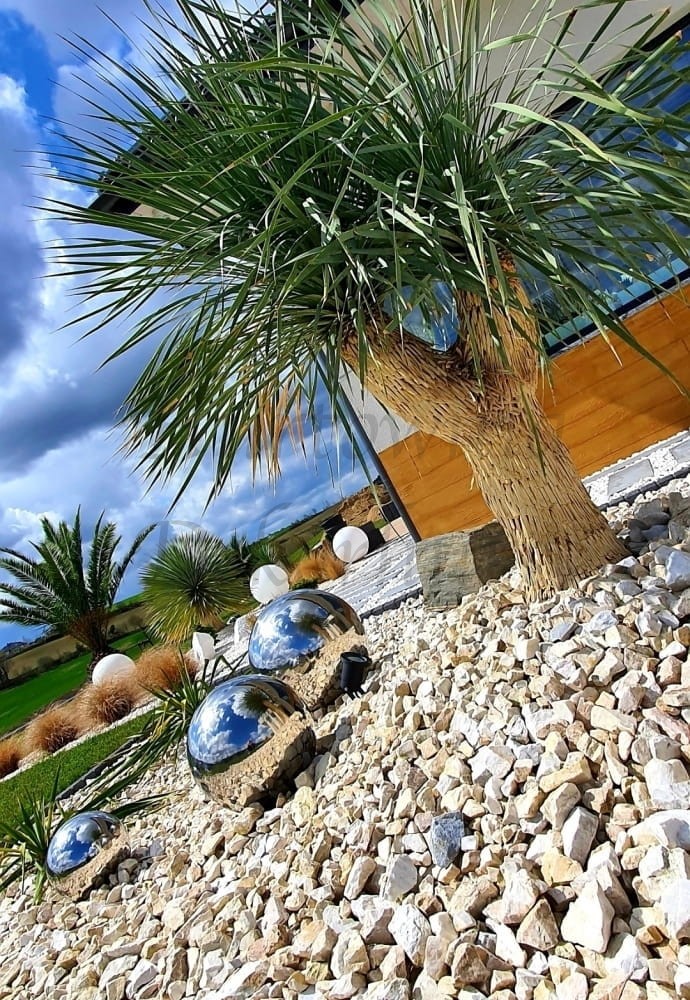 Dzięki dużej wytrzymałości na czynniki mechaniczne i atmosferyczne kula doskonale sprawdzi się w przestrzeniach otwartych i publicznych - przed budynkami, w biurach, hotelach, restauracjach. Ciekawym pomysłem jest użycie w oczku wodnym – artykuł unosi się na wodzie.