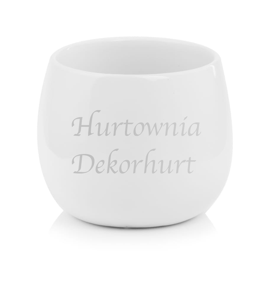 Okrągła, pękata donica, delikatnie zwężana ku górze.