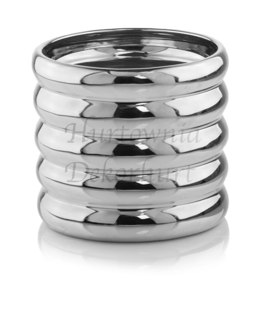Dzięki procesowi galwanizacji powierzchnia produktu jest gładka i jak lustro odbija otoczenie. Ścianki zdobione są geometrycznymi wzorami.