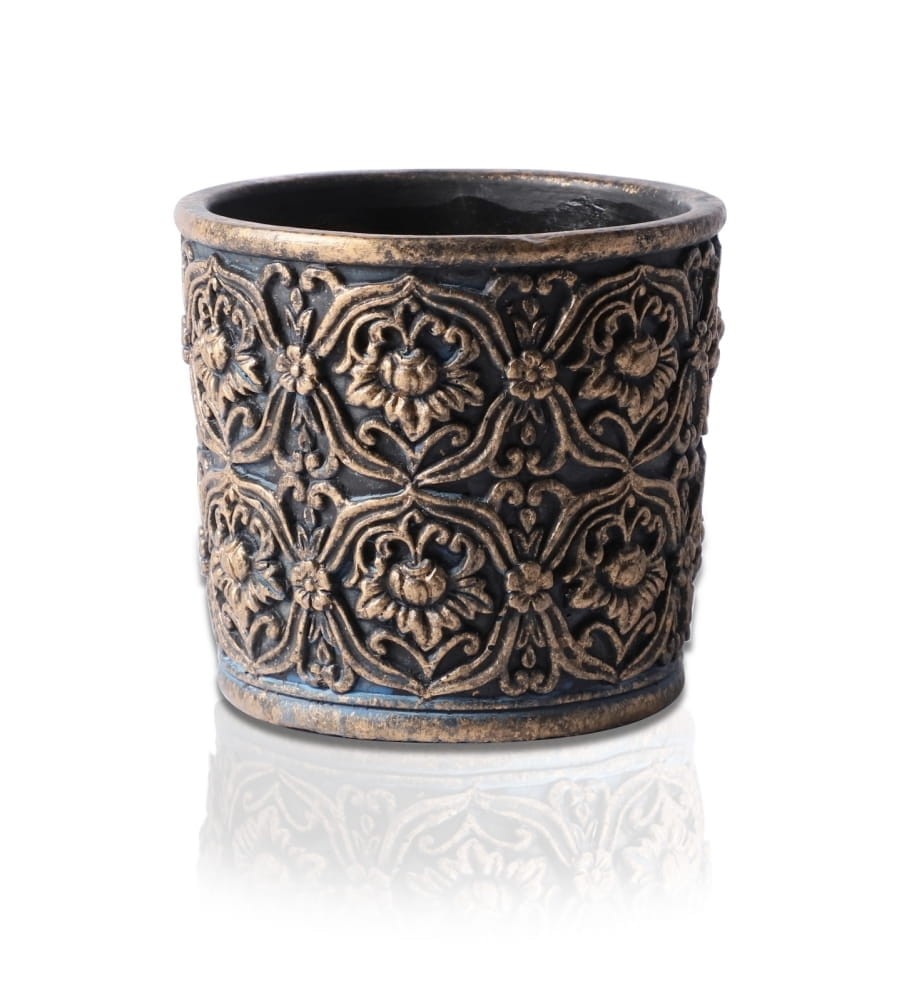 Produkt wykonany jest z ceramiki nieszkliwionej. Ścianki donicy zdobione są klasycystycznymi wzorami.