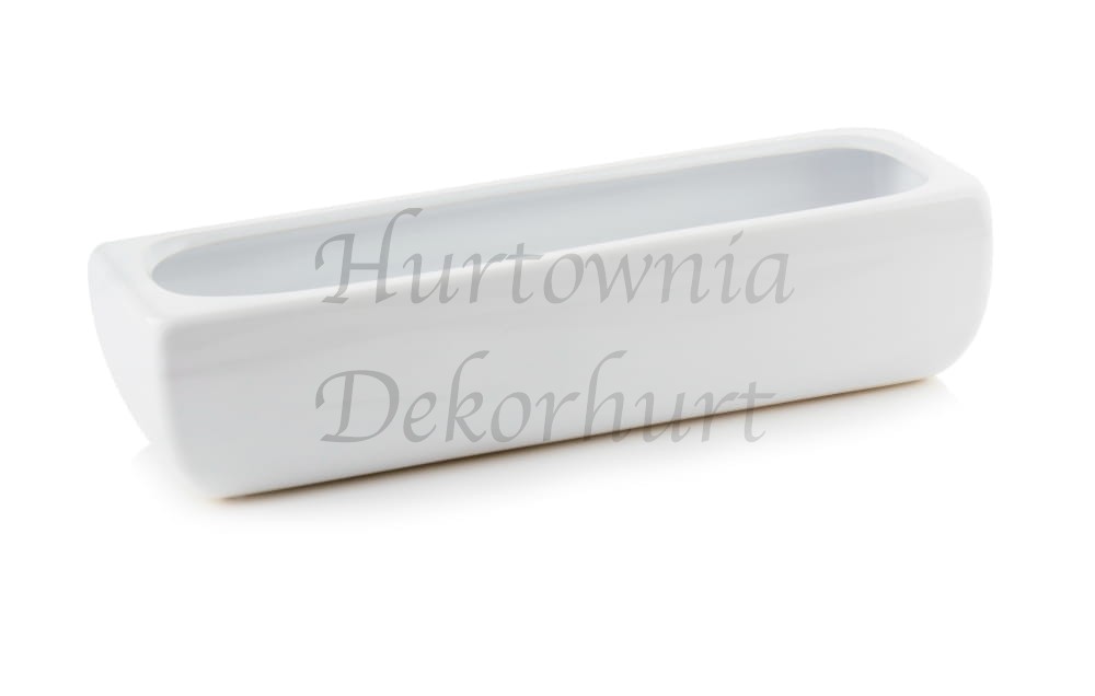 Podłużna donica o prostokątnej podstawie.