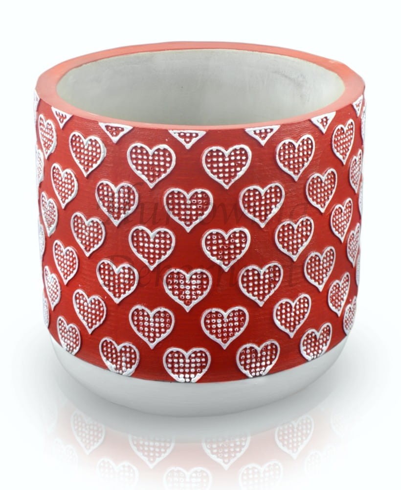 Produkt wykonany jest z betonu dekoracyjnego. Ścianki zdobione są serduszkami.