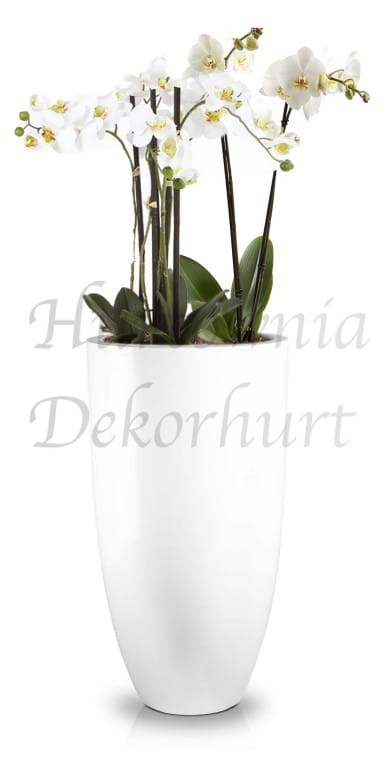 Faktura materiału jest gładka, a kolor lekko błyszczący. Ścianki donicy są grube i sztywne, a mimo to donica jest lekka, co w jest bardzo wygodne w praktycznym użytkowaniu.