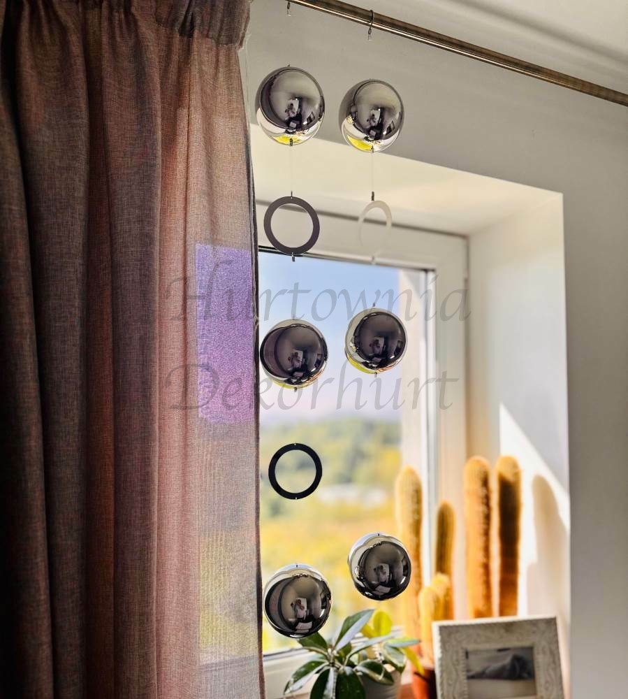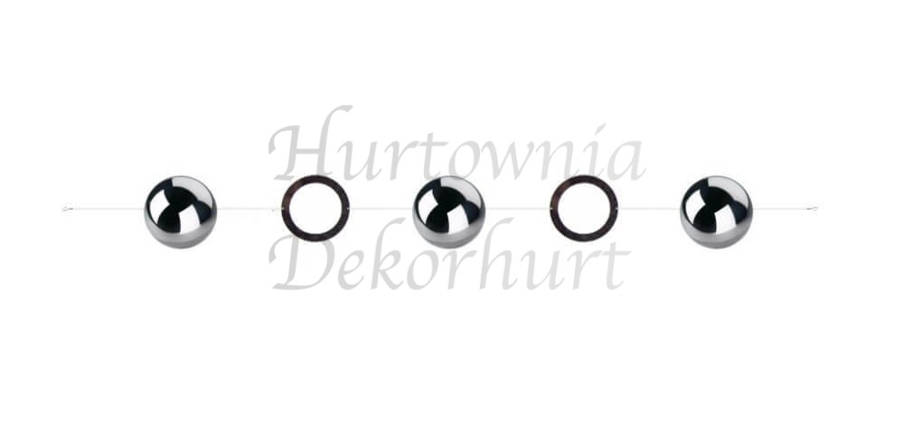 Komplet ekskluzywnych, lustrzanych kul dekoracyjnych na stalowej lince.