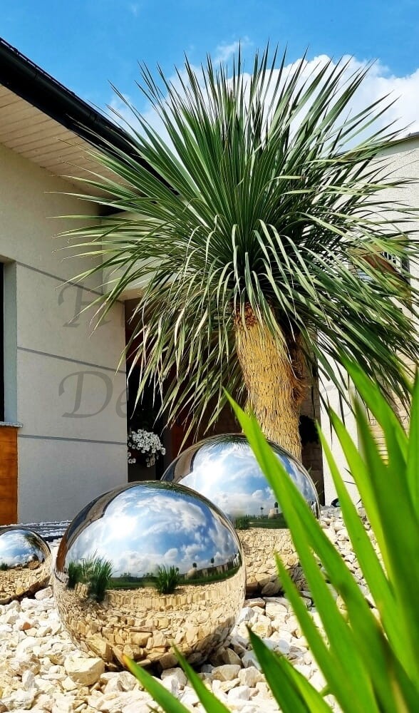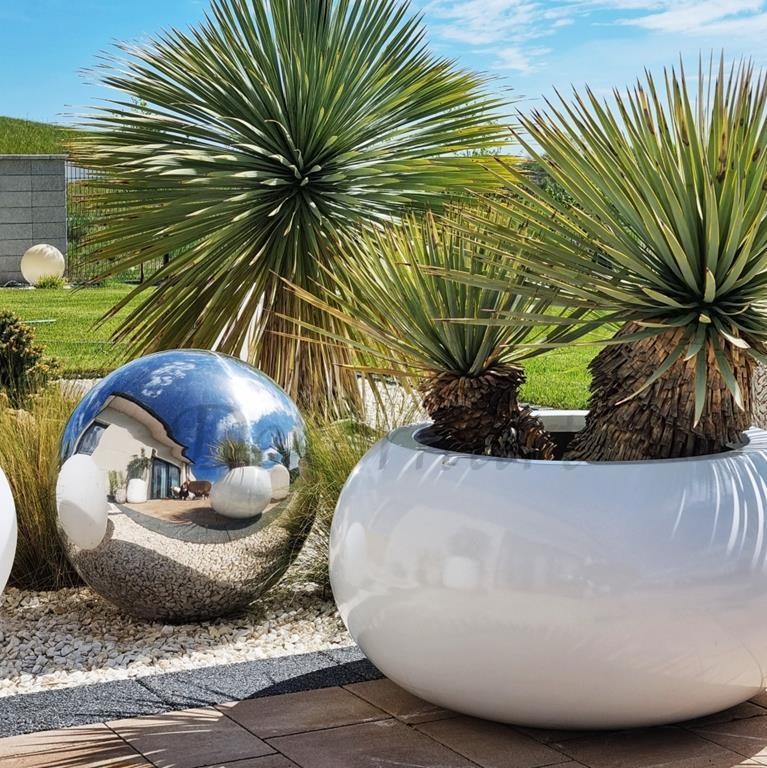 Użyta stal o grubości 0,5mm jest bardzo twarda i nie ulega gięciu. Dzięki dużej wytrzymałości na czynniki mechaniczne i atmosferyczne kula doskonale sprawdzi się w przestrzeniach otwartych i publicznych - przed budynkami, w biurach, hotelach, restauracjach.