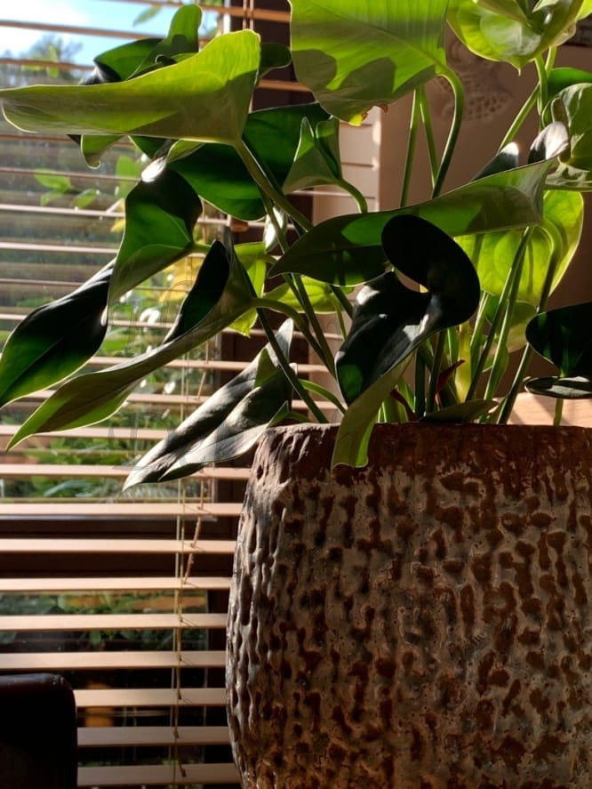 Okrągła, pękata donica, delikatnie zwężana ku górze.
