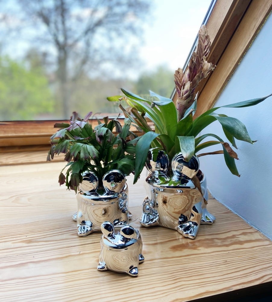 Osłonka doniczka żabka żaba srebrna silver 18 cm