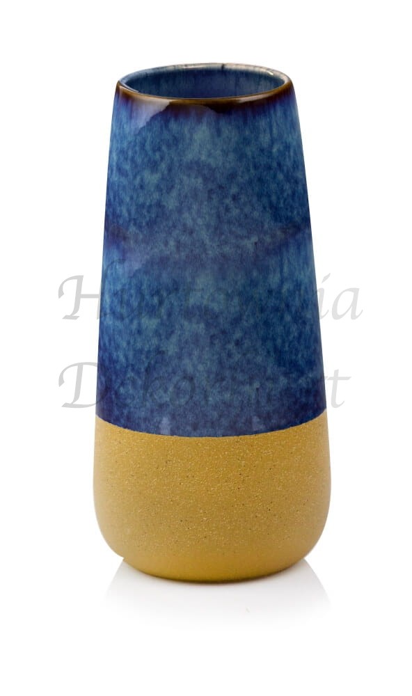 Wazon ceramiczny, łączący w sobie dwie faktury – na górze szkliwo w kolorze miętowym a na dole ceramikę wypaloną lecz nie poddaną szkliwieniu. Dwoistość faktur stanowi o atrakcyjności tego wazonu. Liczne celowe niedoskonałości (zacieki, delikatne wżery, popękane szkliwienie-crackle itp.) dodają mu oryginalnej szlachetności i jednocześnie niepowtarzalności. Produkt ten ma w sobie urok artystycznego rękodzieła i pasuje do wielu stylów wnętrzarskich.